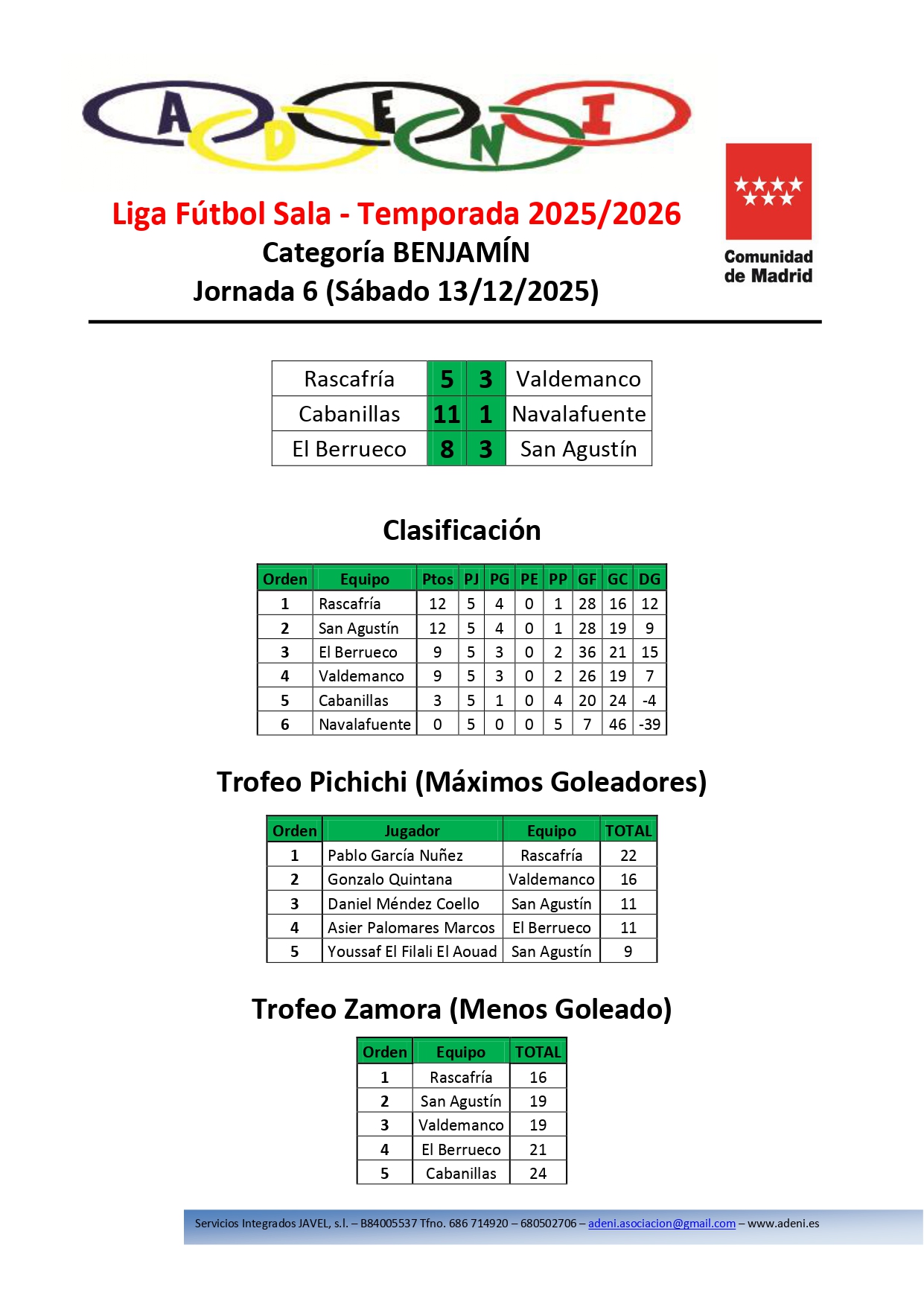 La categoría benjamín consta a lo largo de la temporada de dos Ligas.