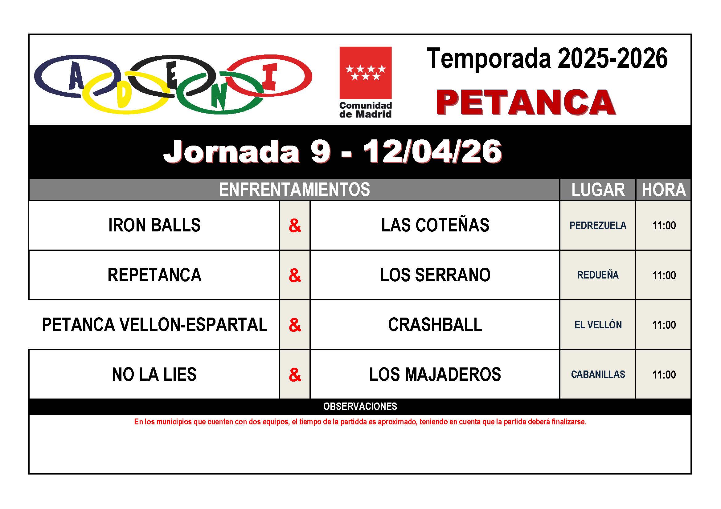 La petanca en la Sierra Norte de Madrid tiene su propio punto de encuentro. A través de la Liga de Petanca ADENI, vecinos y vecinas de distintos municipios se reúnen cada temporada para compartir mucho más que un deporte: amistad, convivencia y el orgullo de representar a su pueblo.