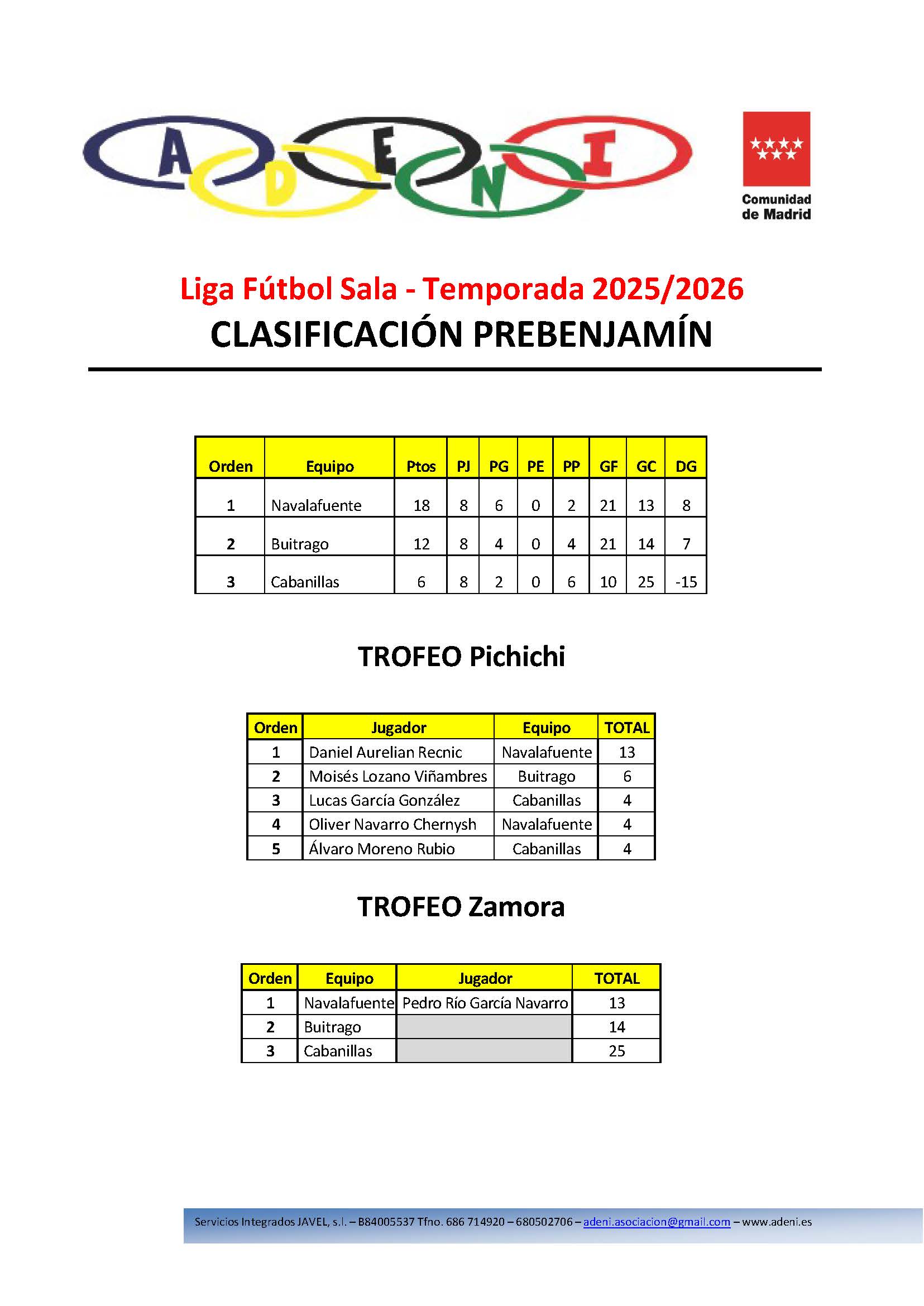 La Liga Prebenjamín de Fútbol Sala de ADENI – Temporada 2025/26 arranca con mucha ilusión y ganas de disfrutar del deporte. Una competición pensada para que los más pequeños aprendan, se diviertan y compartan los valores del fútbol sala: compañerismo, respeto y juego limpio.
